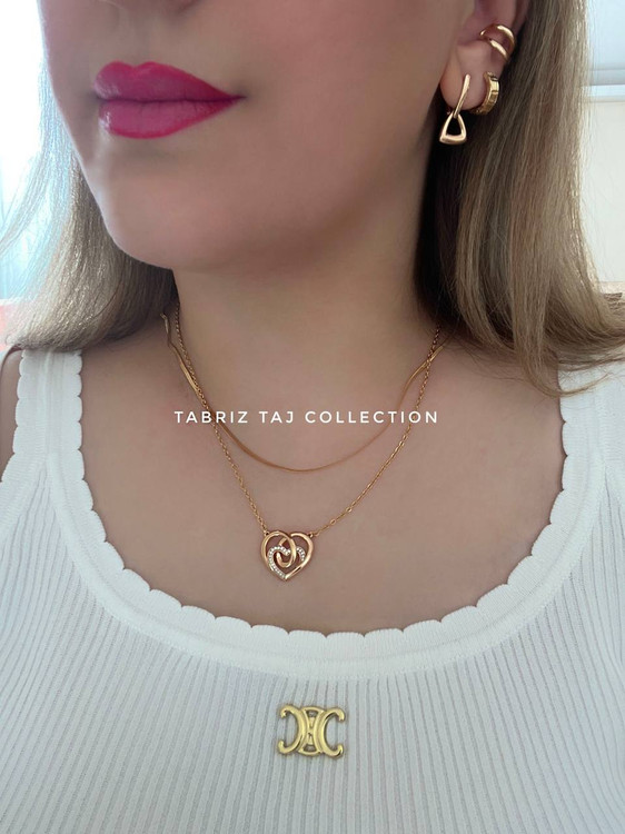گردنبند زنانه دوقلب ژوپینگ — آبکاری طلا، ضدحساسیت و رگلاژ قابل تنظیم