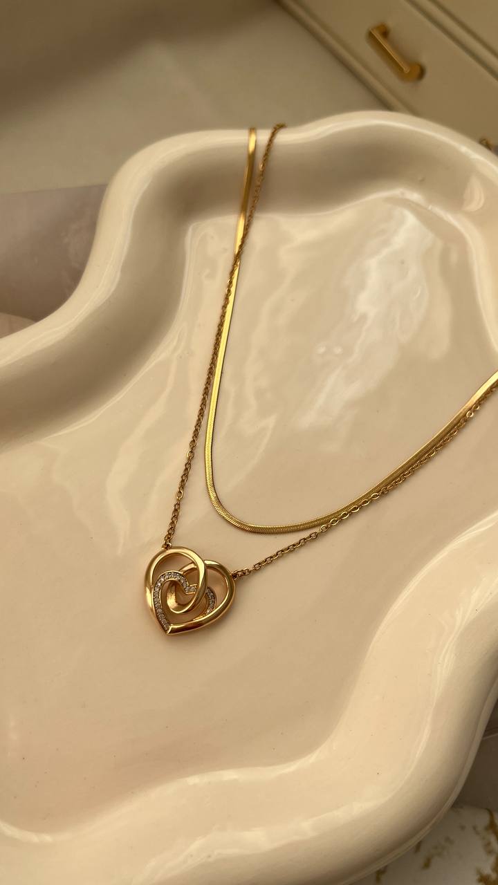 گردنبند زنانه دوقلب ژوپینگ — آبکاری طلا، ضدحساسیت و رگلاژ قابل تنظیم