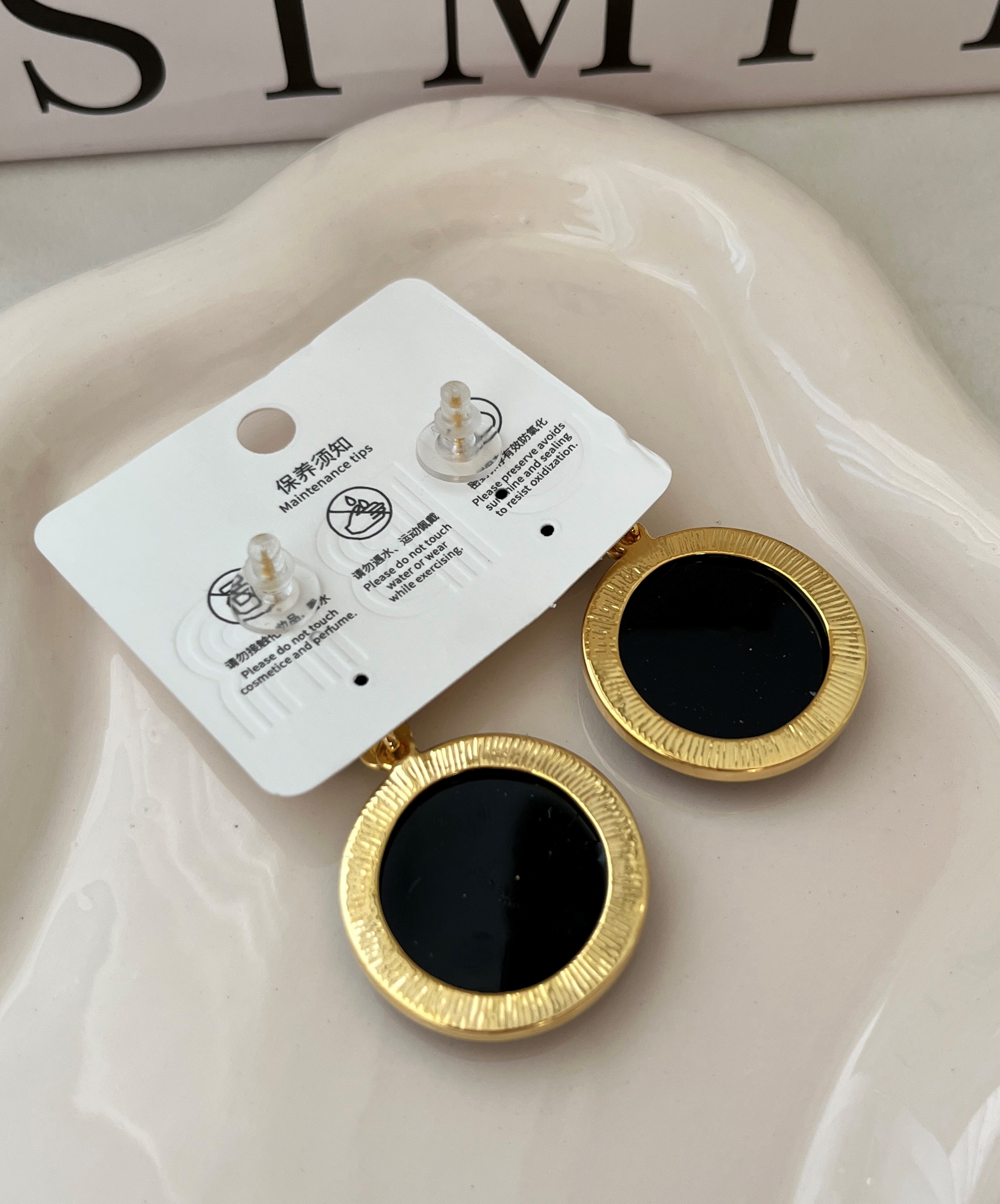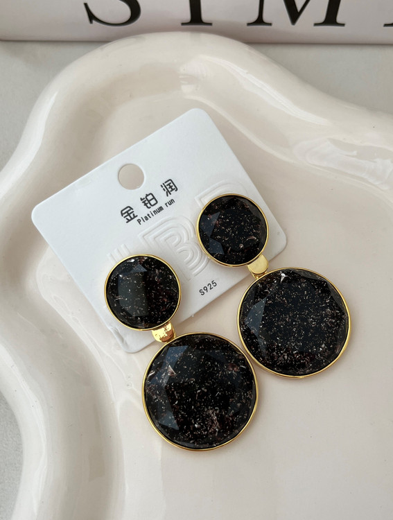 گوشواره دایره مشکی با پایه نقره 925 عیار و روکش پلاتینیوم