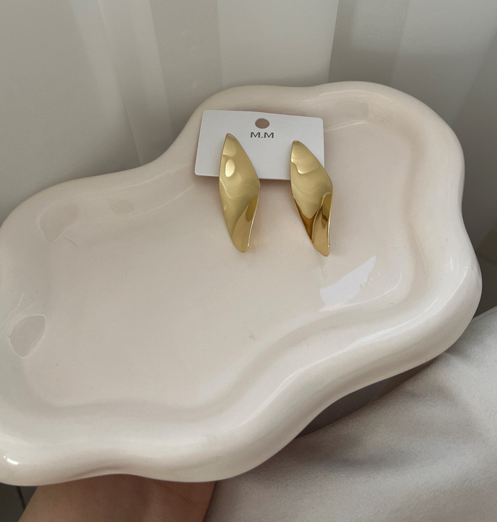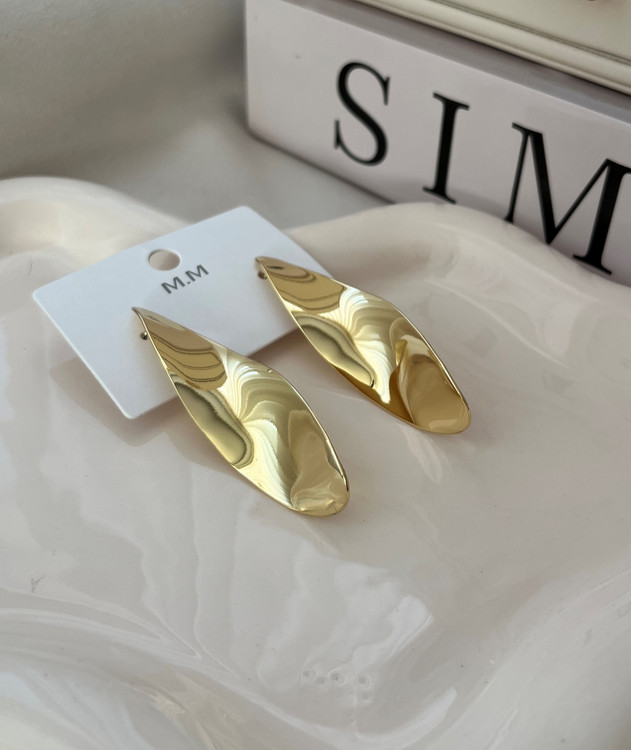 گوشواره دفرمه طلایی برگ با آبکاری رادیوم مو-حصول کشور چین می باشد.این گوشواره با طراحی زیبا و ظریف دارای سطح صاف و یکدست و آینه ای بسیار چشم نواز و زیباست و به استایل شما روح میبخشد و مکمل تمامی استایل هاست.